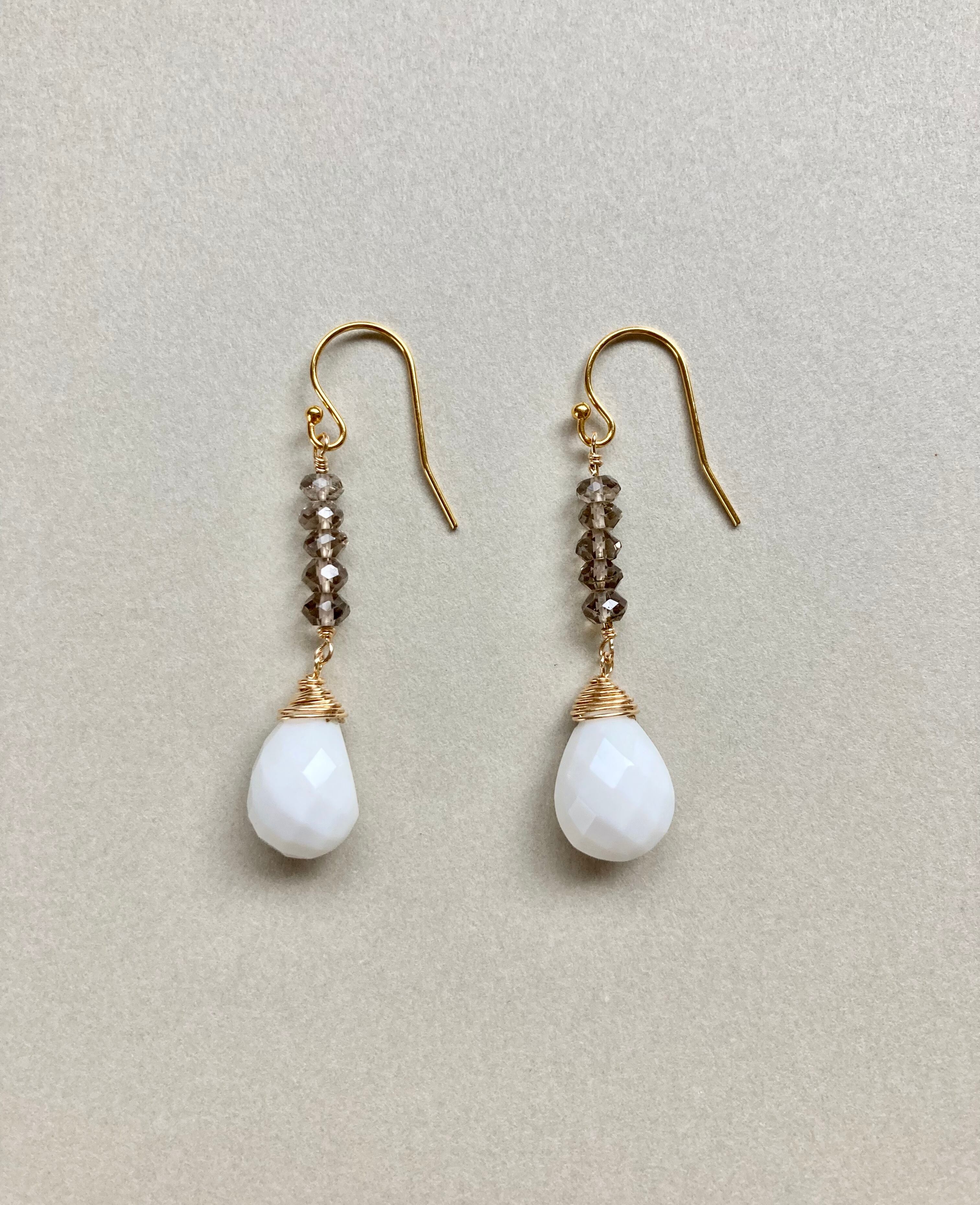 ホワイトアゲートとスモーキークォーツのピアス(k14gf)
