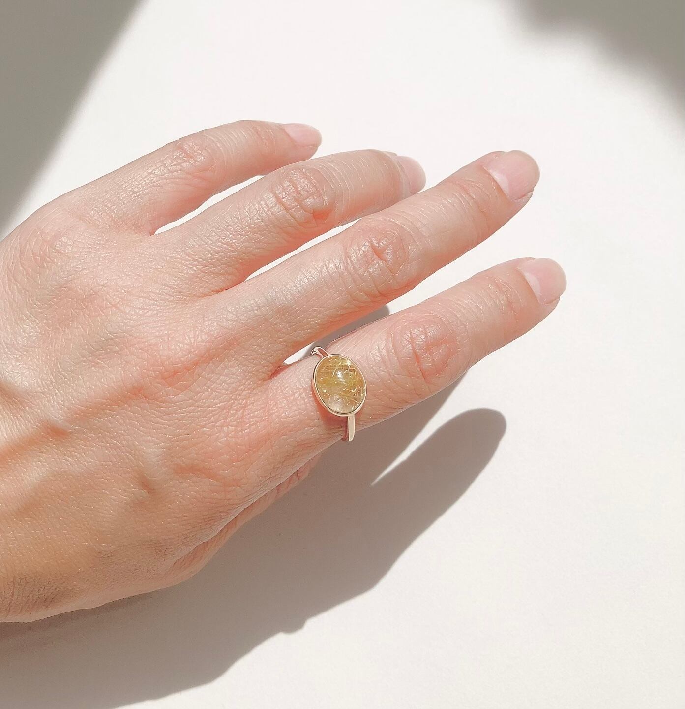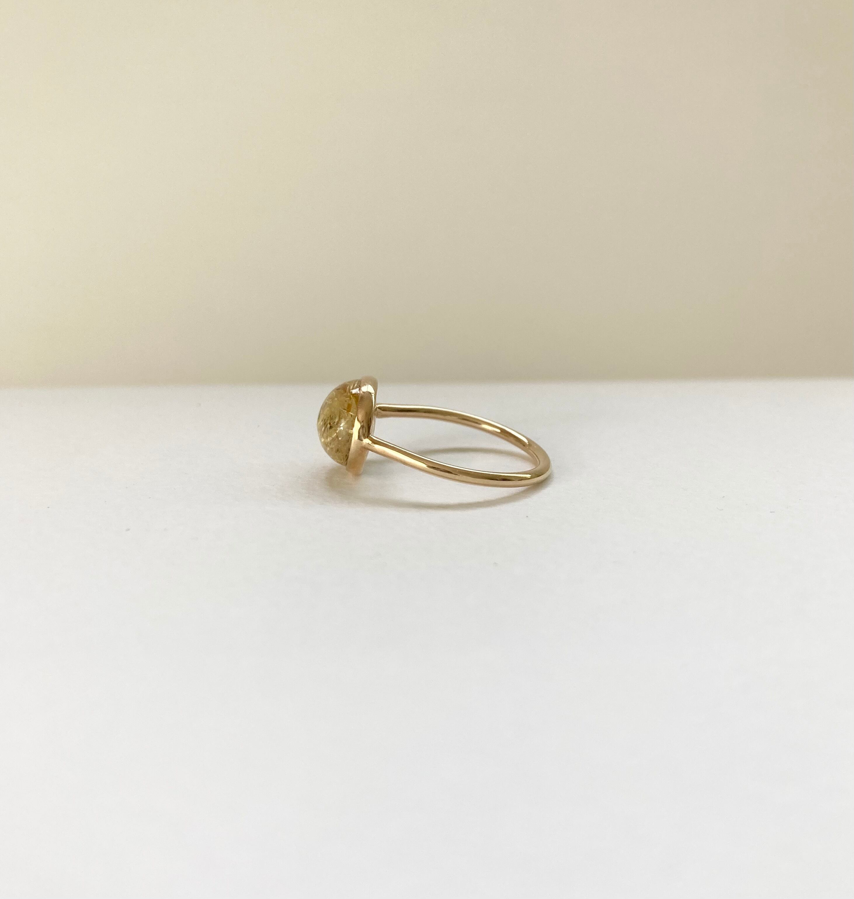 ぷっくりとしたカボションに金色の針が入ったルチルクォーツ。