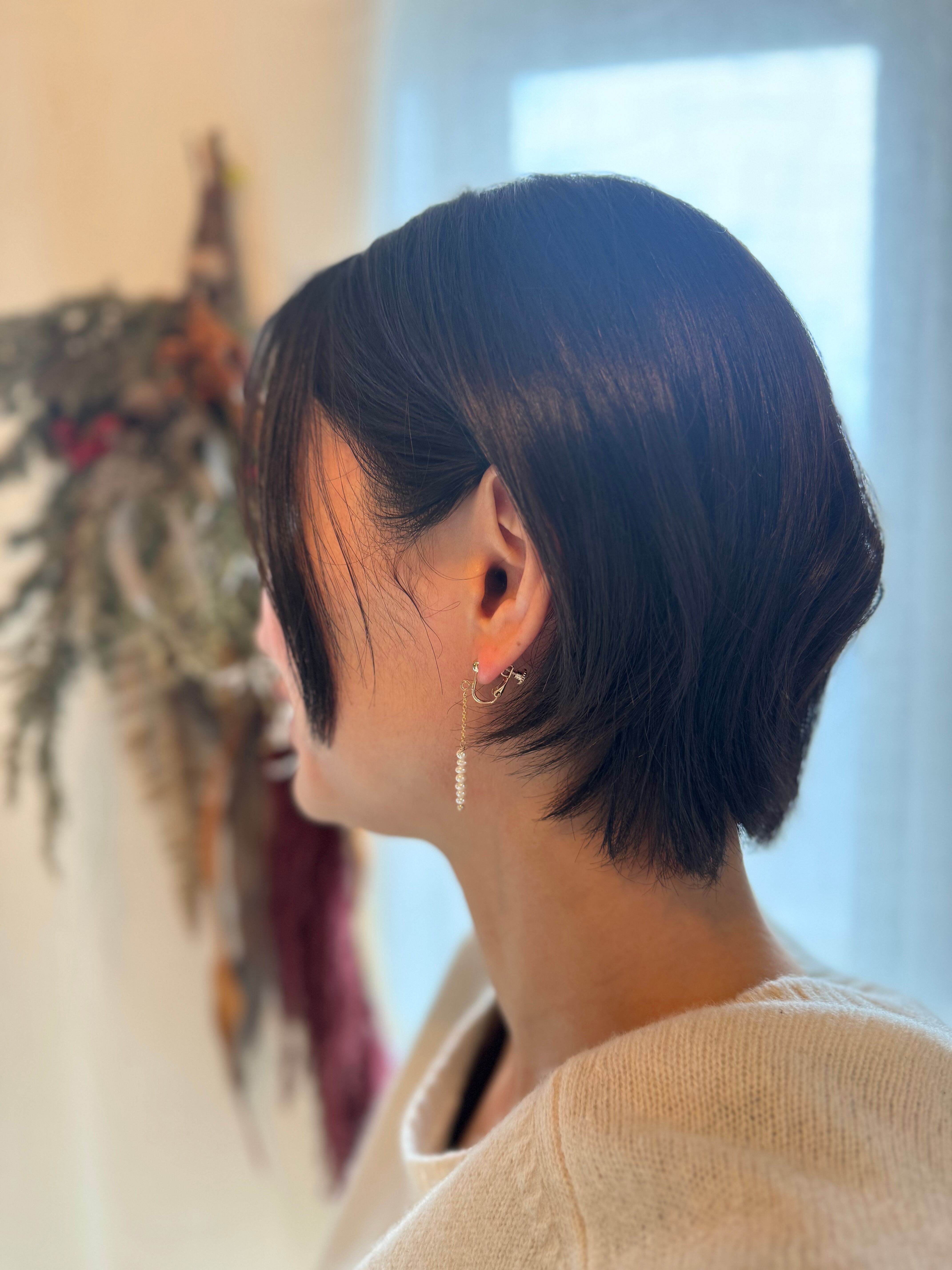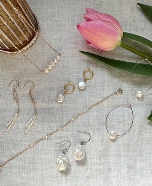 小さくさりげない印象なので、普段アクセサリーを着けない方や揺れるパールを着けたいけれど、大きいパールに抵抗がある方にオススメです。