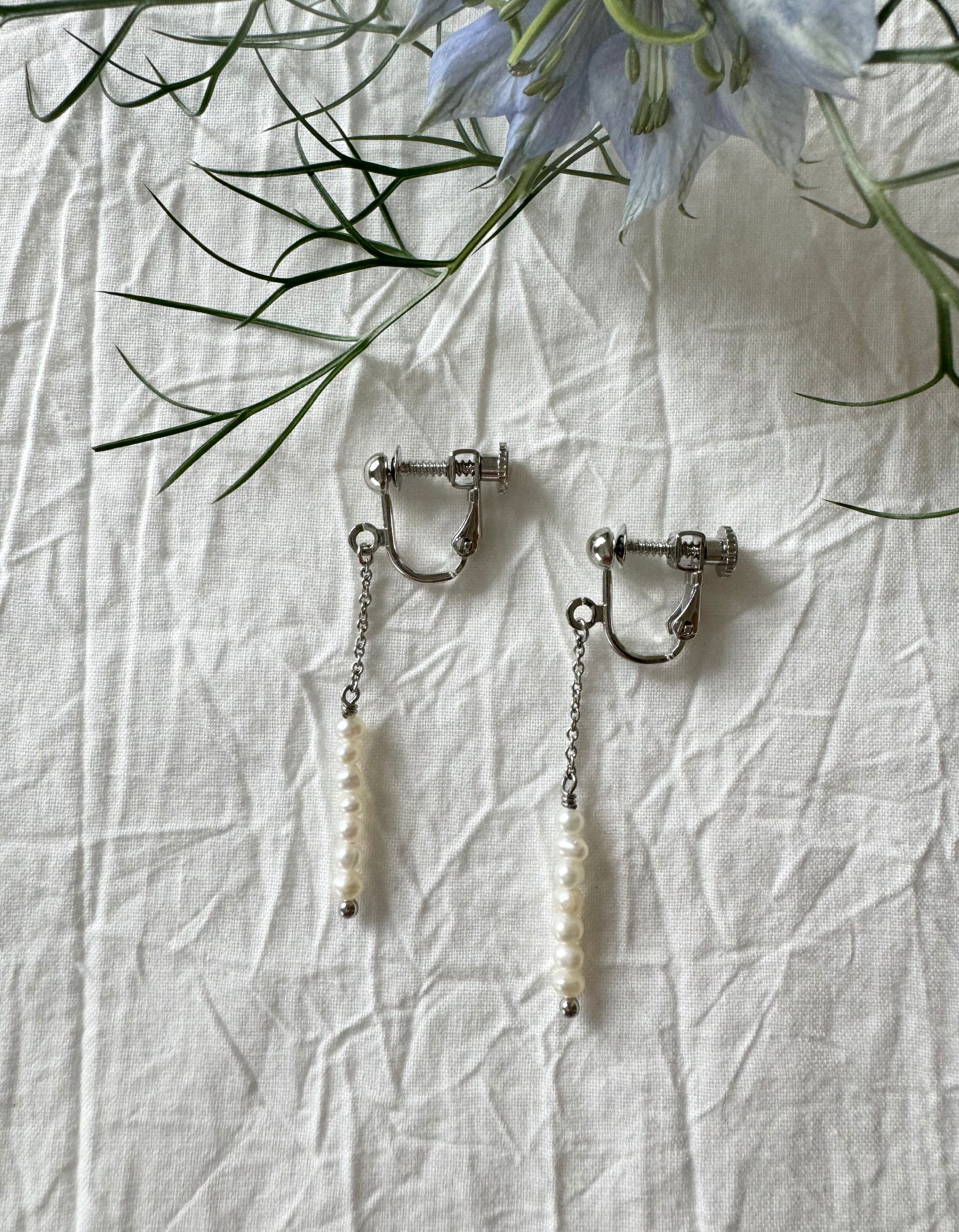 約2㎜のベビーパールを7粒連ねたイヤリング。