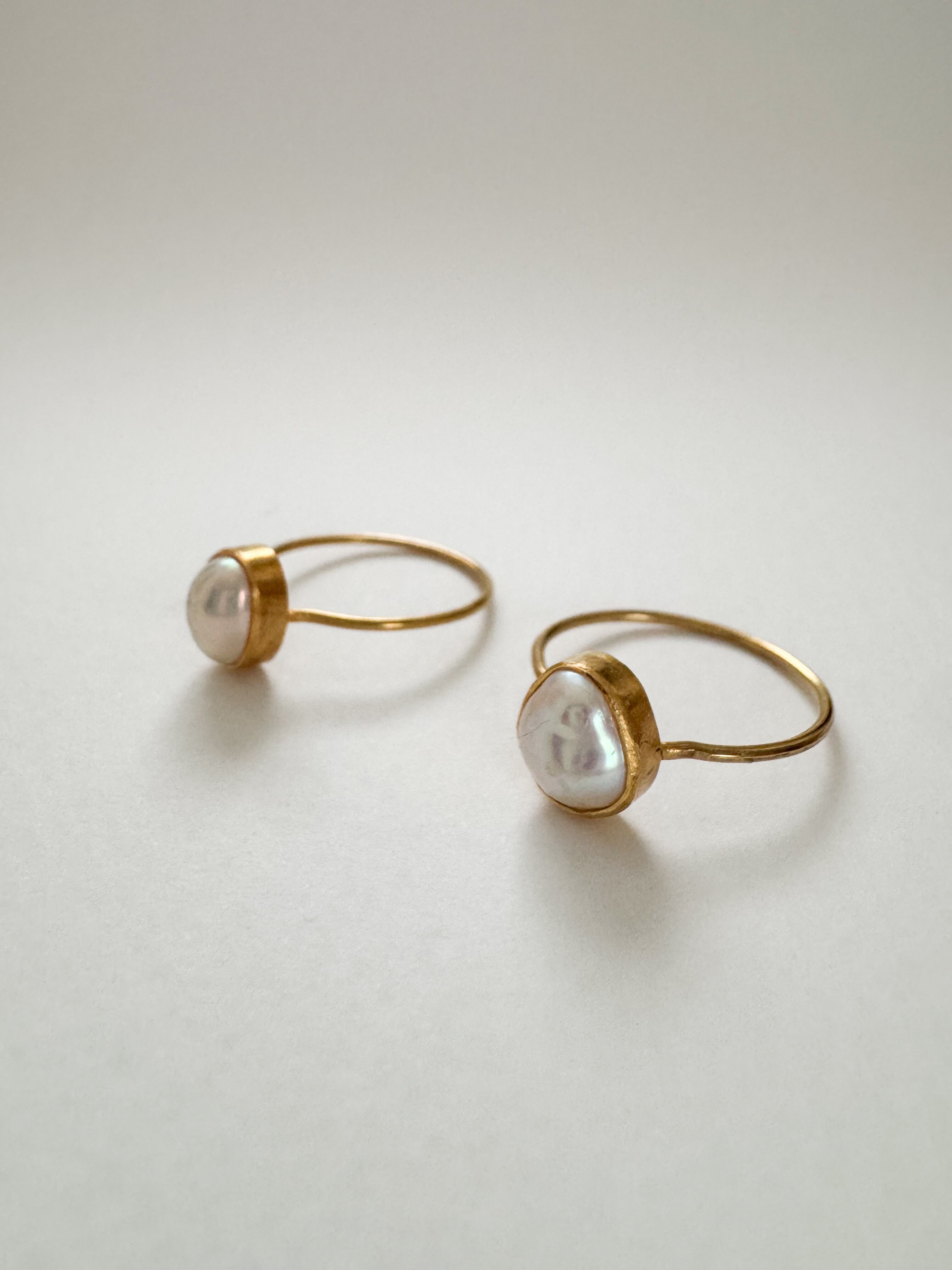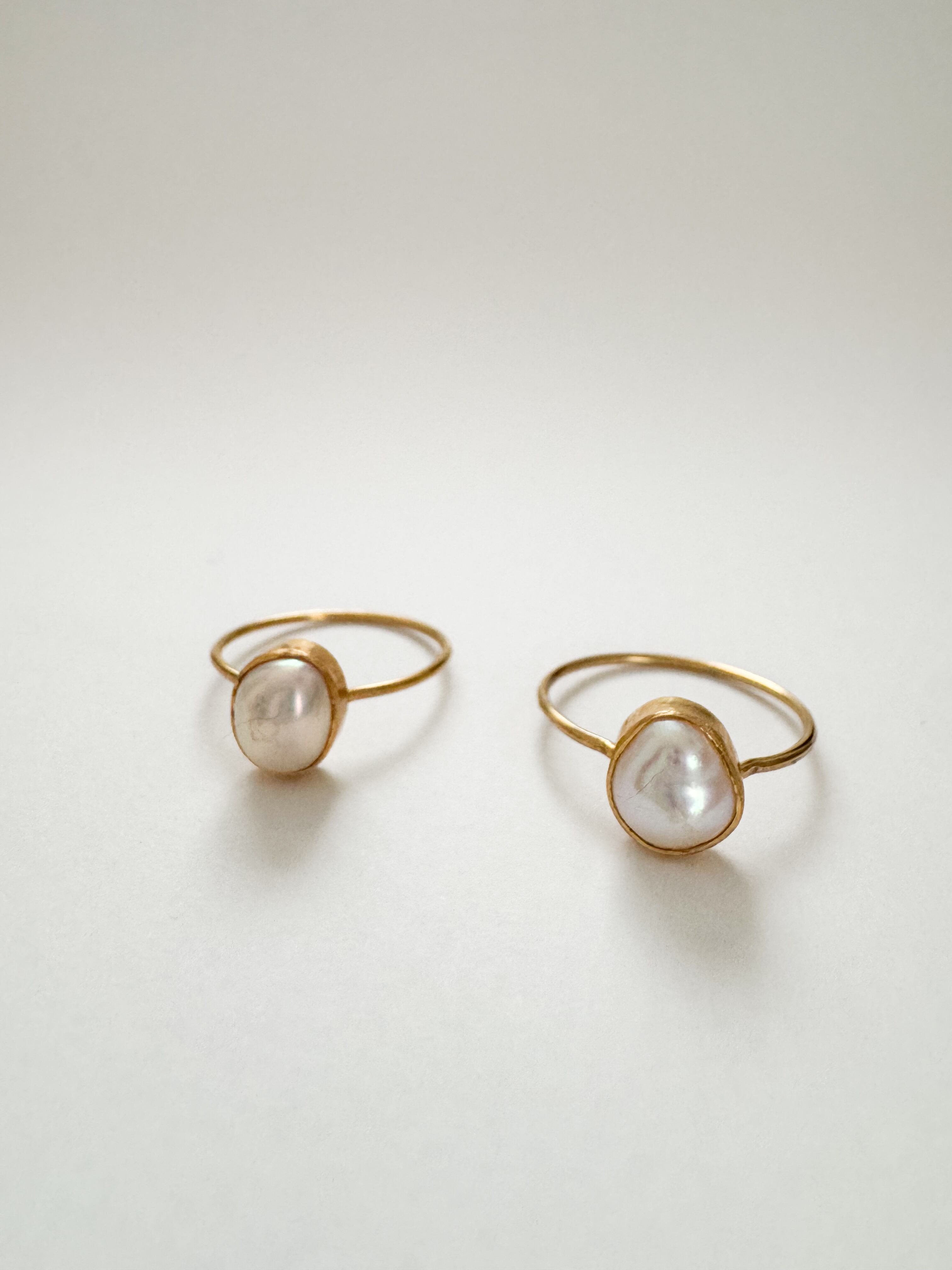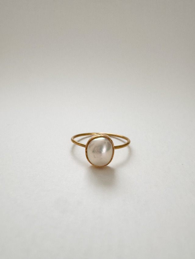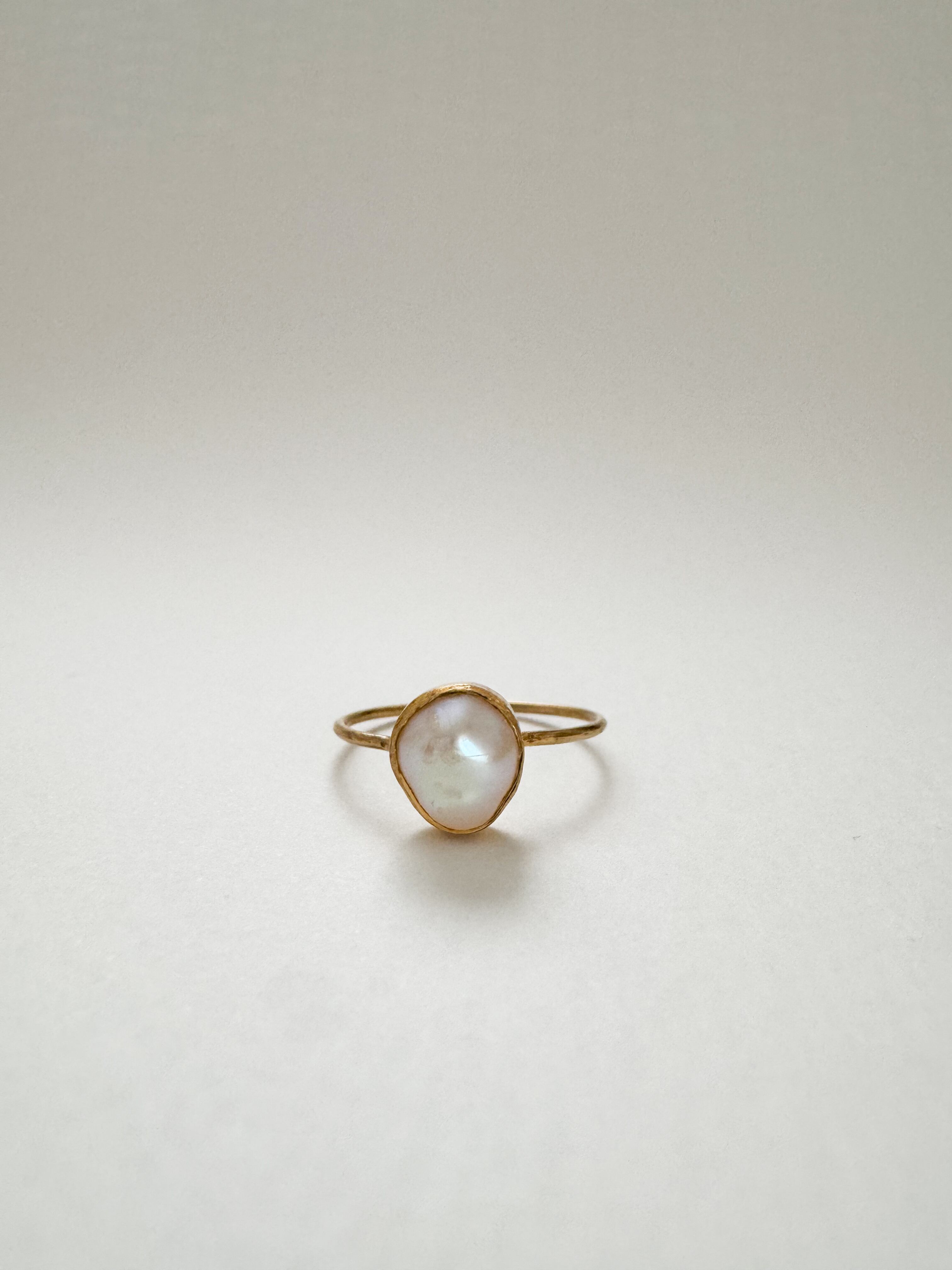 華奢なリングにたっぷりとしたバロックパールを留めた